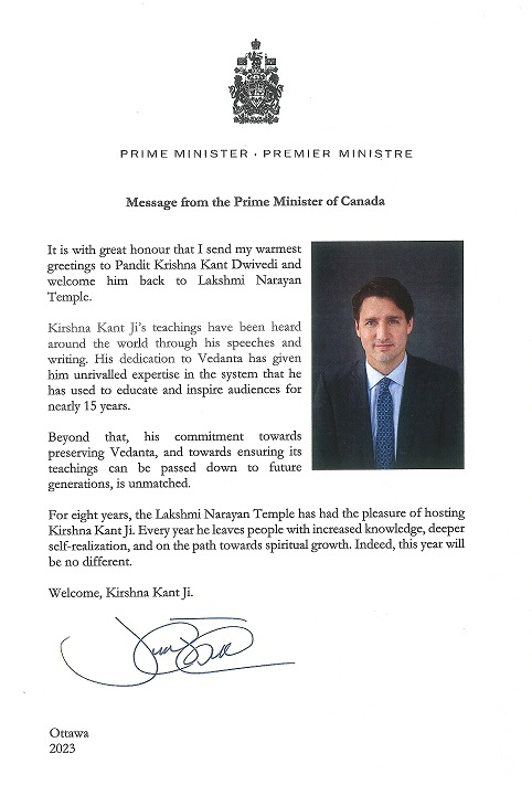 कनाडा के प्रधानमंत्री जी के द्वारा स्वामी कृष्णकांत जी को प्रशंसा पत्र वर्ष 2023 |