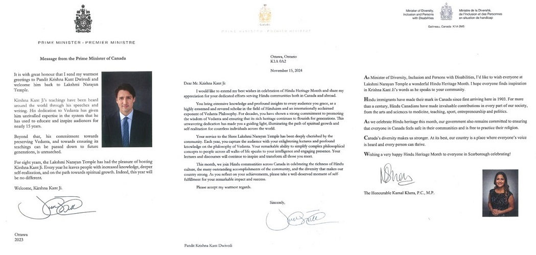 कनाडा के प्रधानमंत्री जी के द्वारा स्वामी कृष्णकांत जी को प्रशंसा पत्र वर्ष 2024 |